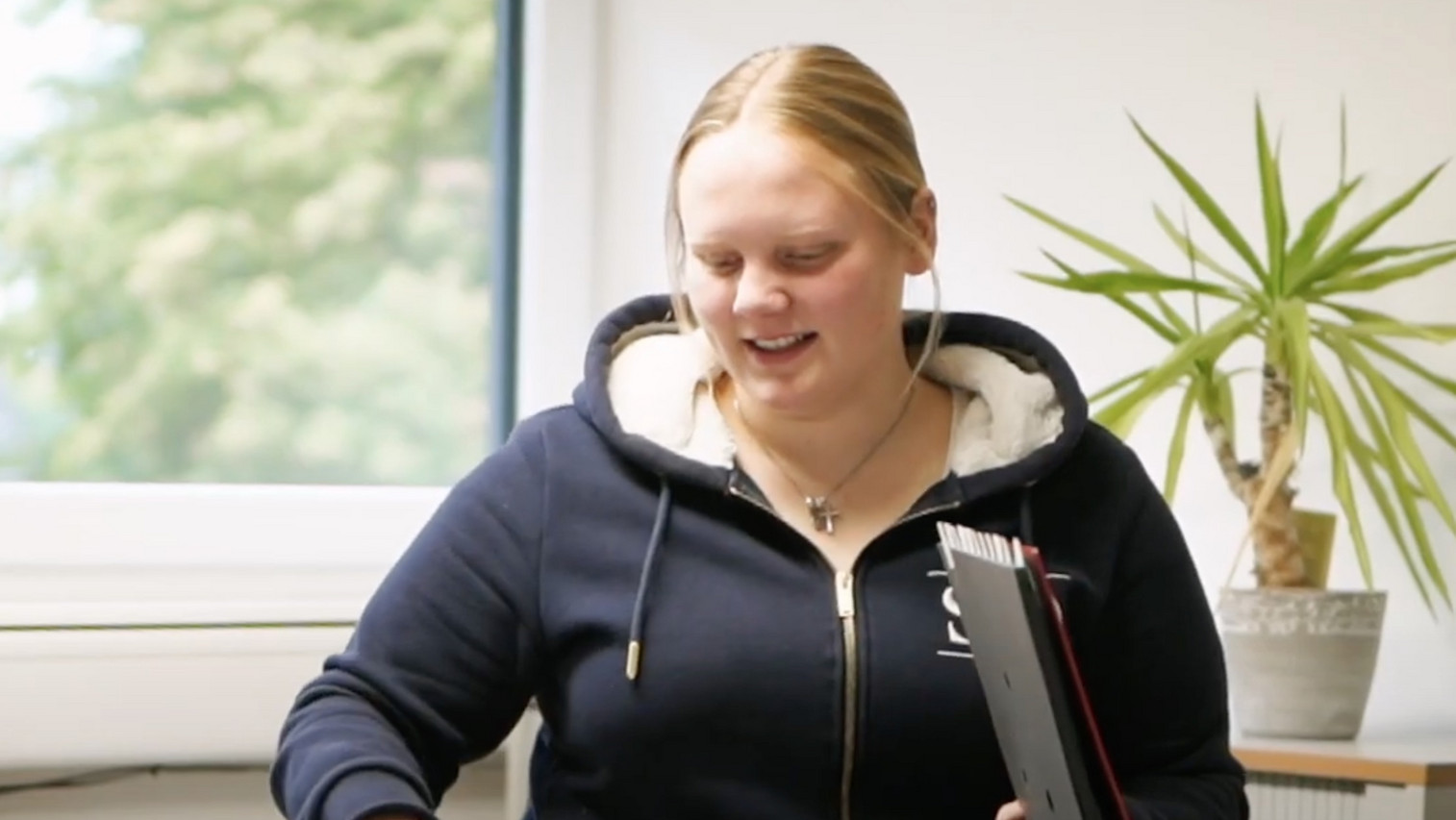 Im Clip spricht sie über ihre Aufgaben, den Ablauf ihres Berufsschulunterrichts sowie ihre regionale Verbindung zu Wüstenberg und uns als Arbeitgeber.